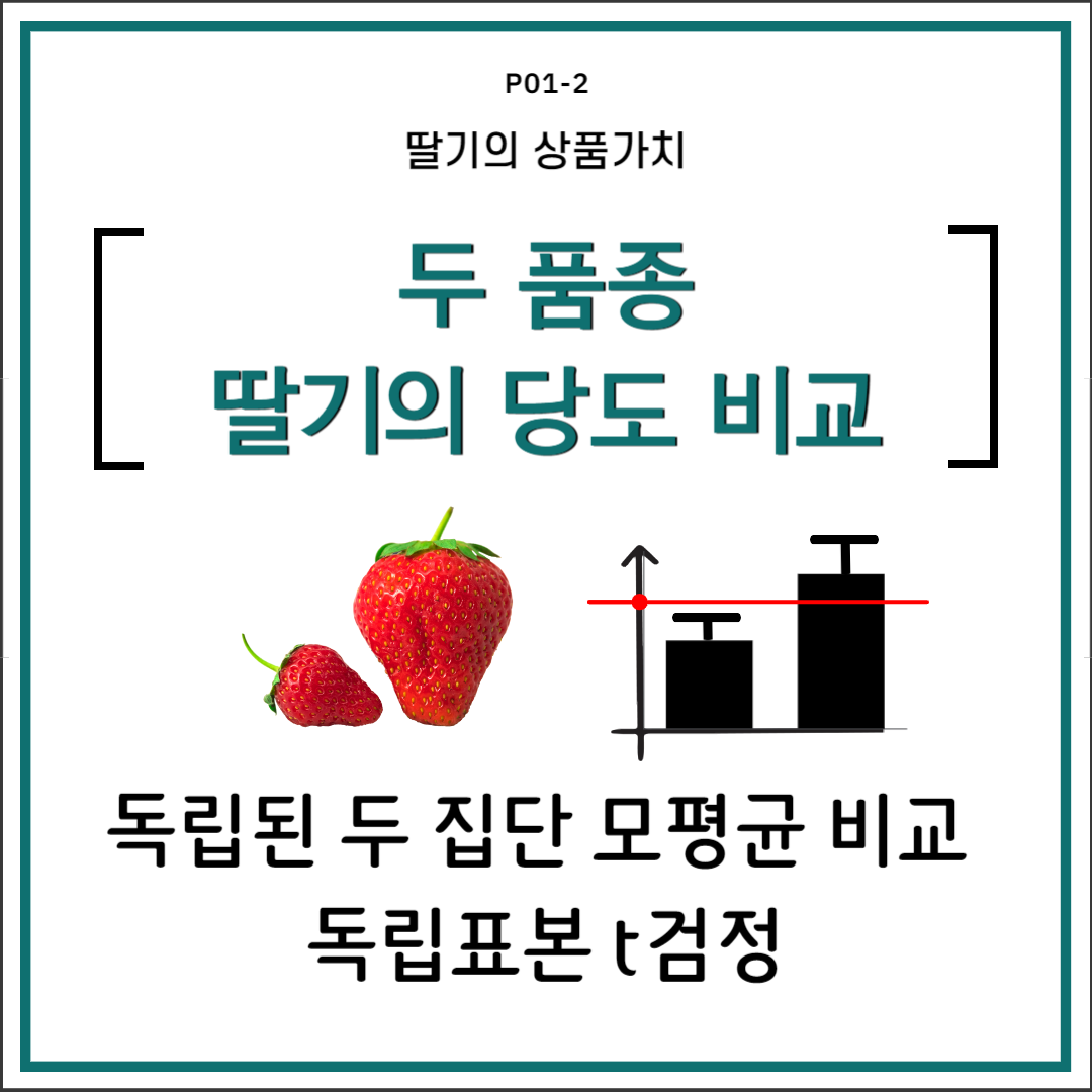 • 두 품종 딸기의 당도 비교: 독립표본 t검정[5]