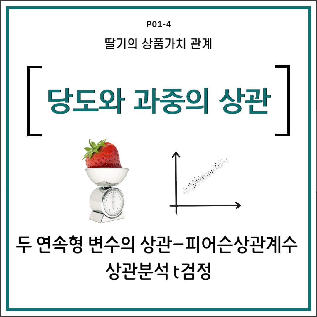 • 딸기의 당도와 과중 상관의 유의성: 상관분석 t검정[7]