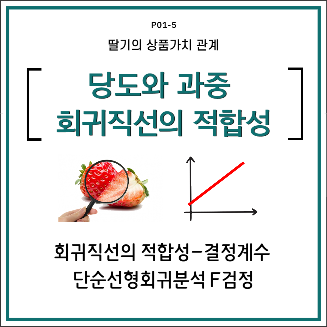 • 딸기의 당도와 과중 회귀모델의 유의성: 단순선형회귀분석 F검정[8]