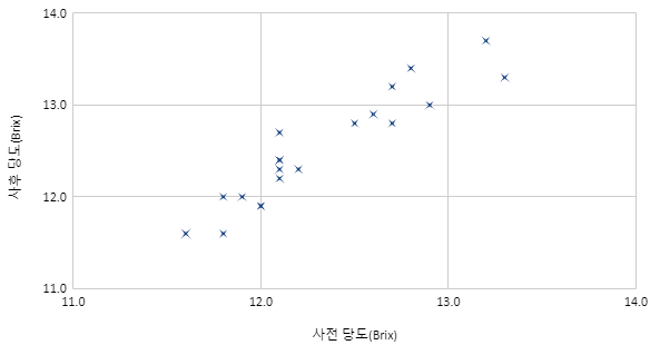 | 딸기ID | 사전 당도(Brix) | 사후 당도(Brix) |