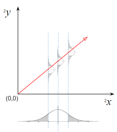 저온숙성 전과 저온숙성 후의 분산은 변함이 없다고 가정합니다. 이를 등분산가정이라고 부릅니다. 등분산가정은 연속적인 반응이 일어남에 있어 속성의 공간에서 출현하는 데이터는 방향에만 영향을 준다는 중요한 가정입니다.