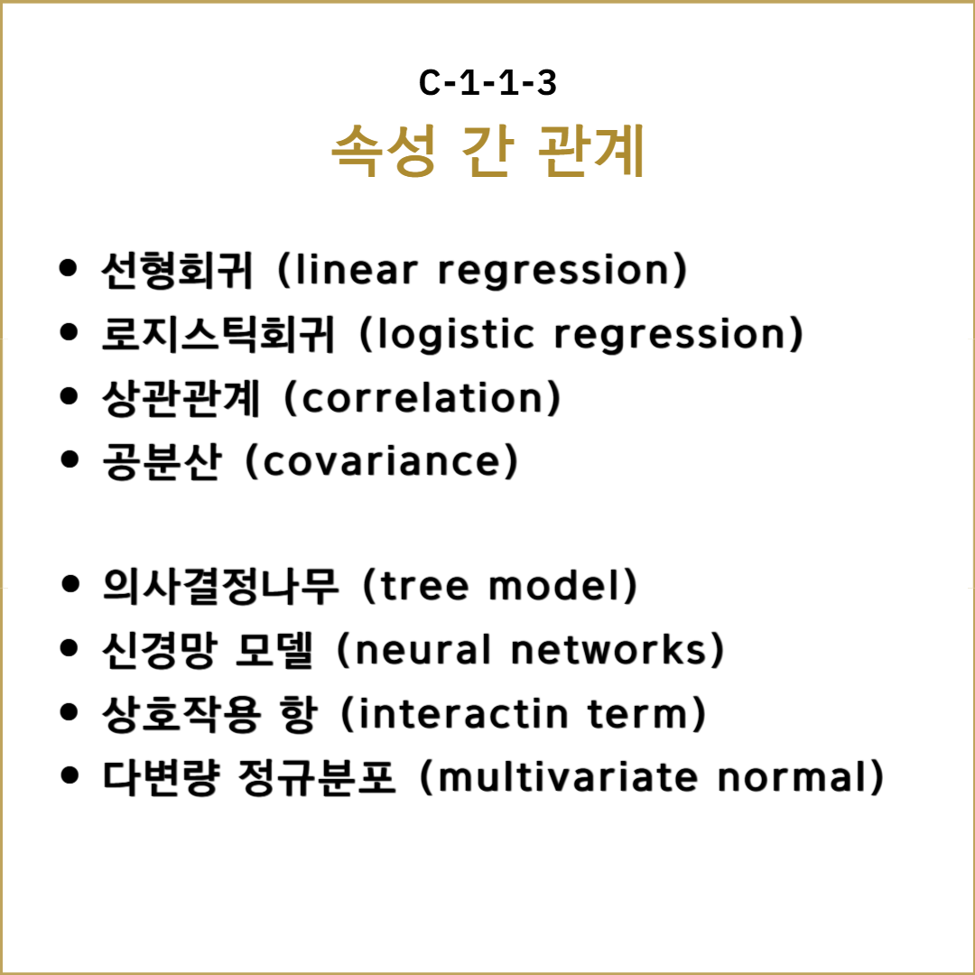 상관관계 (Correlation) 두 변수 간의 선형적 관계의 강도를 나타내며, 값은 -1에서 1 사이를 가짐. 상관계수로 관계의 방향성과 강도를 나타냄.