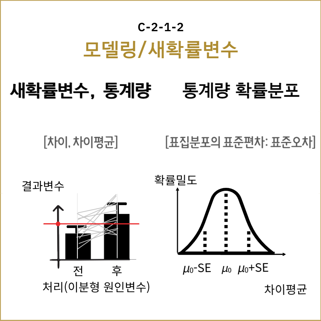 여기서, $D$는 대응된 확률변수인 $Y_1$과 $Y_2$의 차이이며 확률변수: $D=Y_1-Y_2$