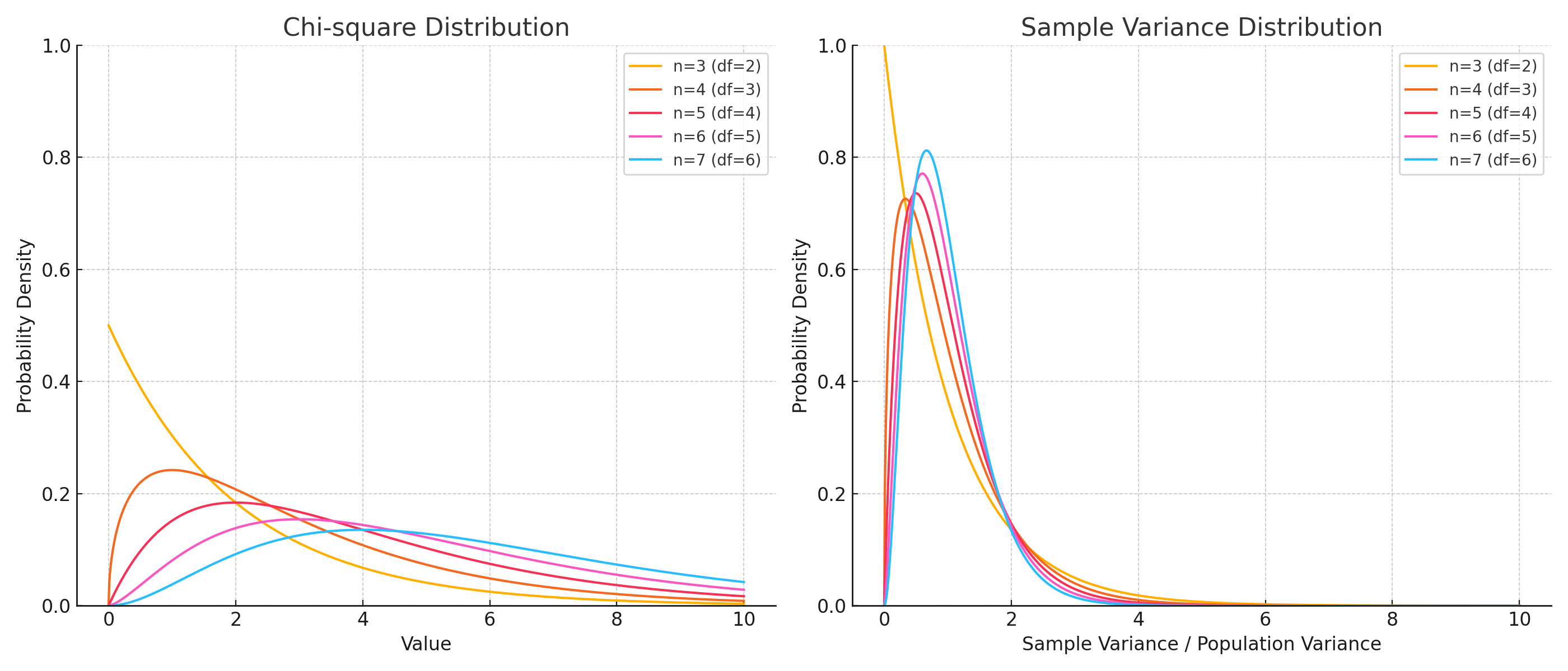 여기서, $\chi^2_{n-1}$은 자유도가 $(n-1)$인 카이제곱통계량