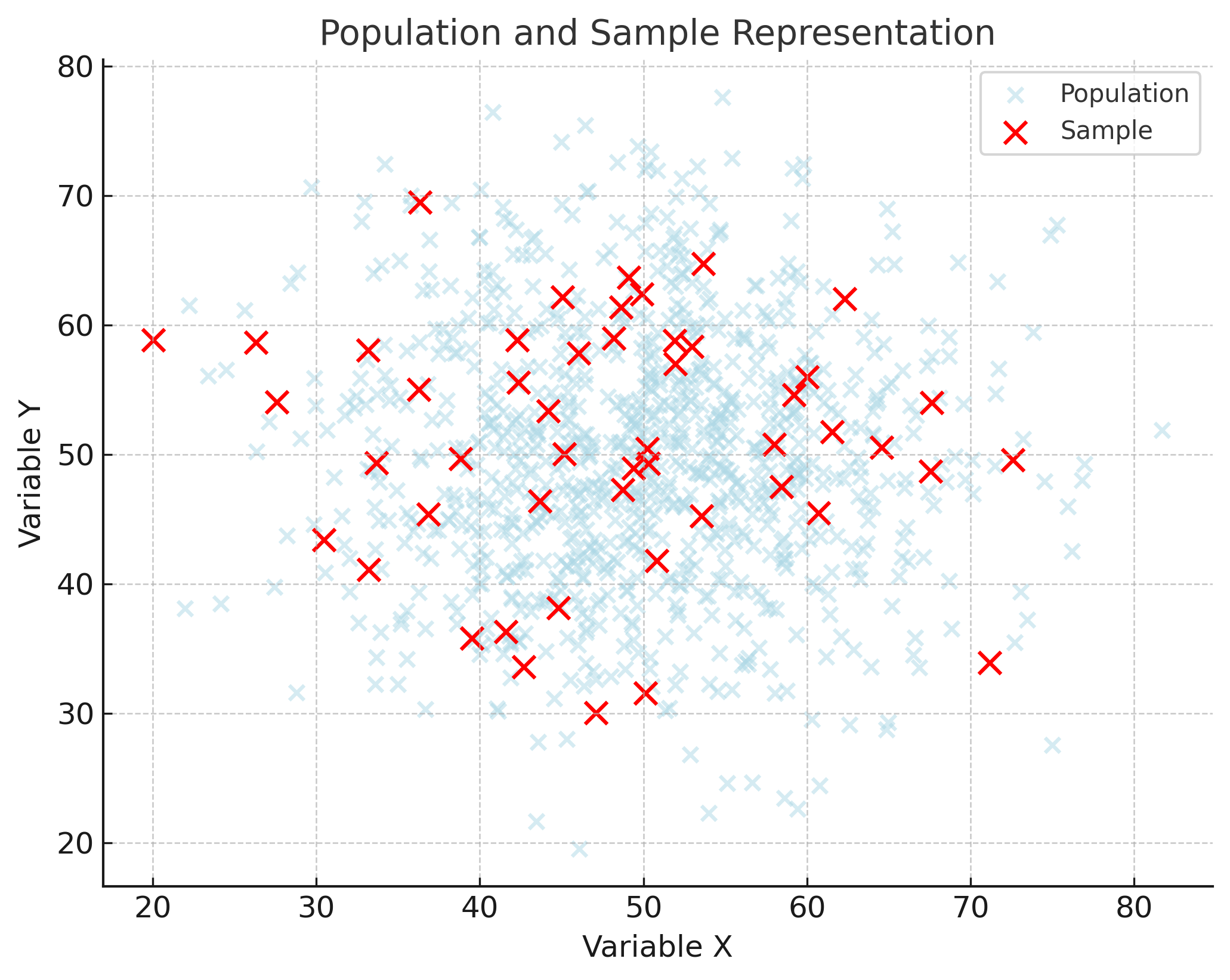 통계학에서의 표본은 모집단의 부분집합으로서 모집단의 특성을 추정합니다.