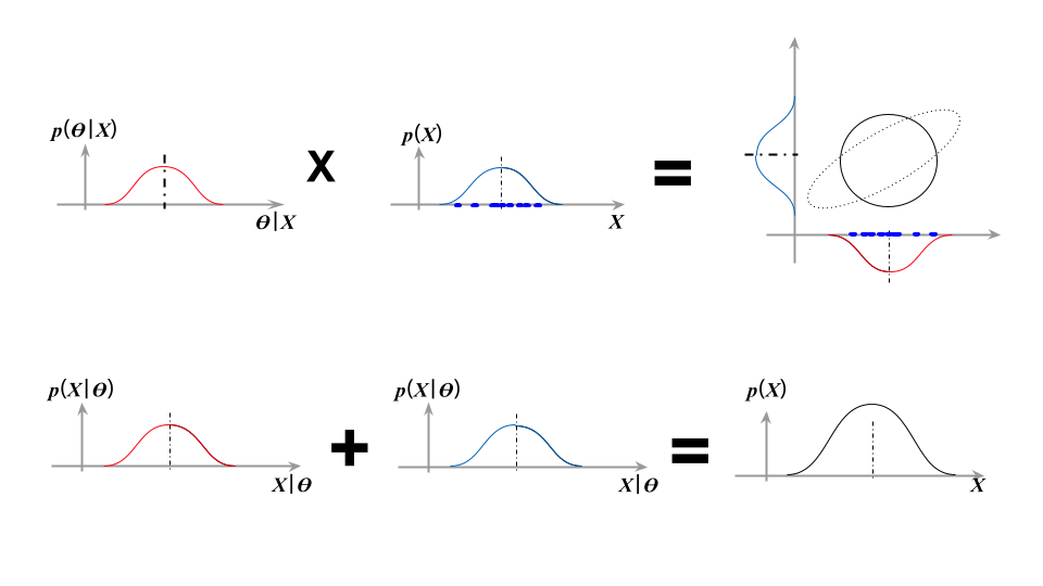 따라서, 곱은 확률밀도함수가 됩니다. (이변량 확률밀도함수로 해석됨)
