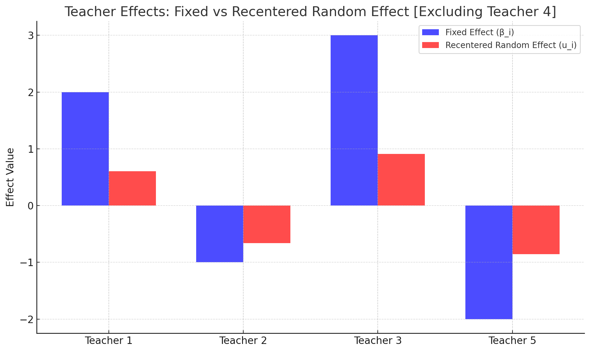 Fig. 1. 선생님별 효과 비교: 고정효과 vs 랜덤효과