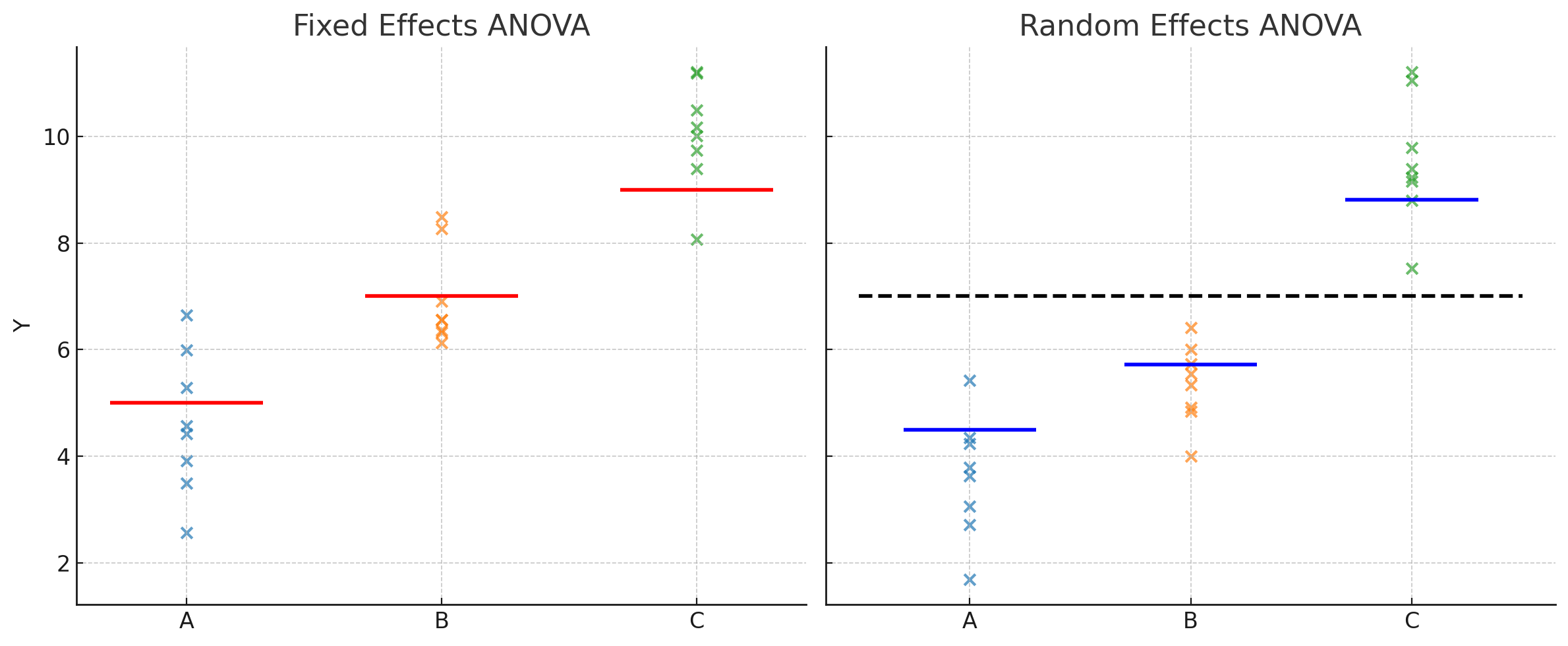 Fig. 1. 고정효과 ANOVA와 랜덤효과 ANOVA 비교