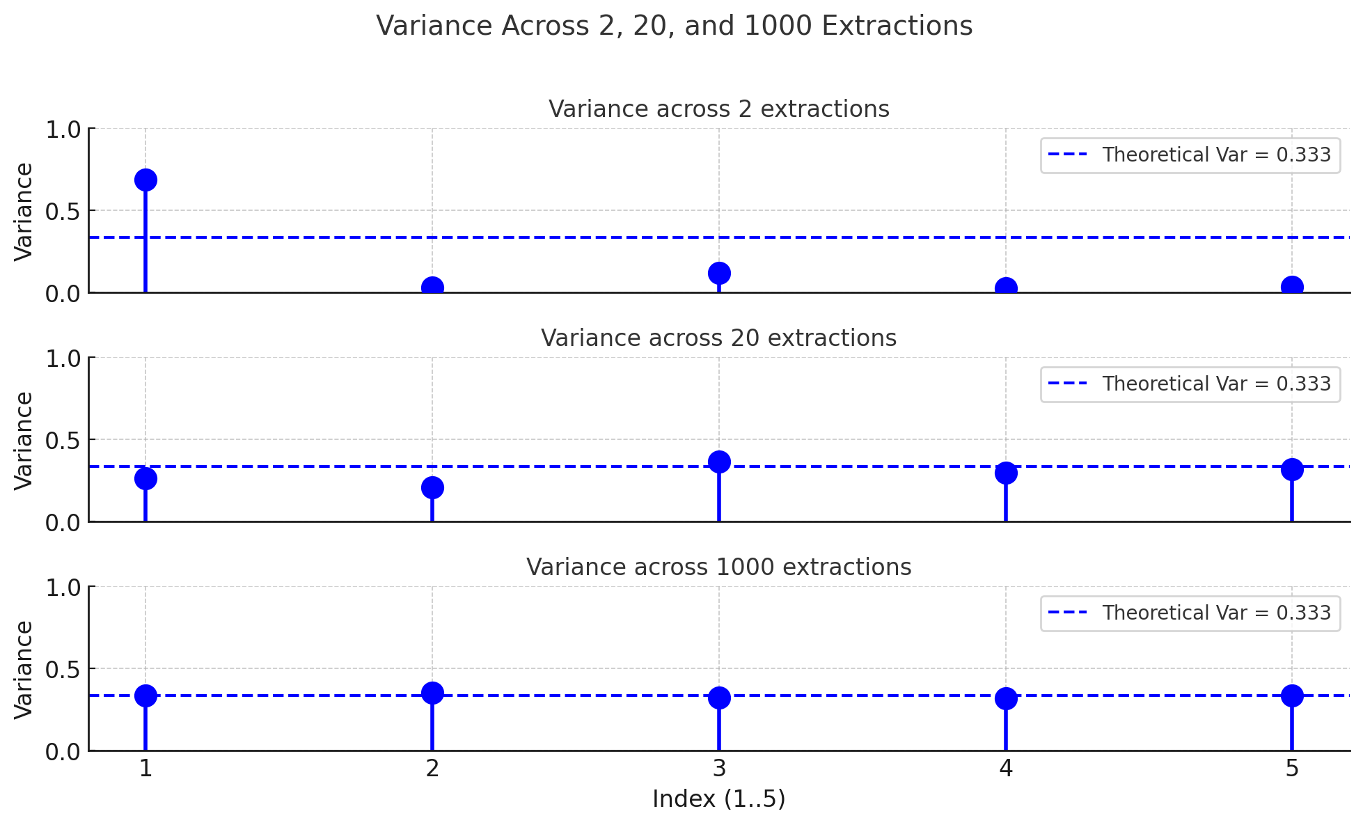 모집단의 분산은 개체의 변동성을 수치화한 것입니다. 표본평균의 분산은 랜덤추출하는 표본의 변동성을 수치화한 것입니다.