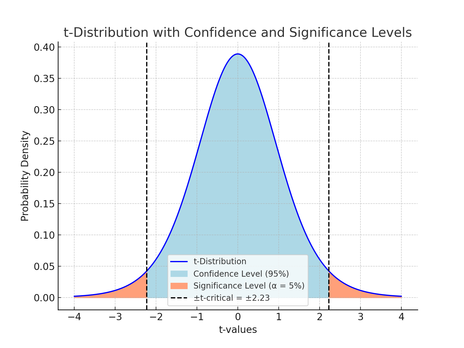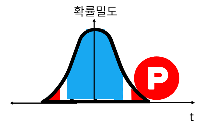Fig.1 의 푸른색이 귀무가설이 참인 신뢰수준의 영역이고 영역의 면적이 신뢰수준인 확률값입니다. 유의수준은 (1-신뢰수준)인 확률값입니다.