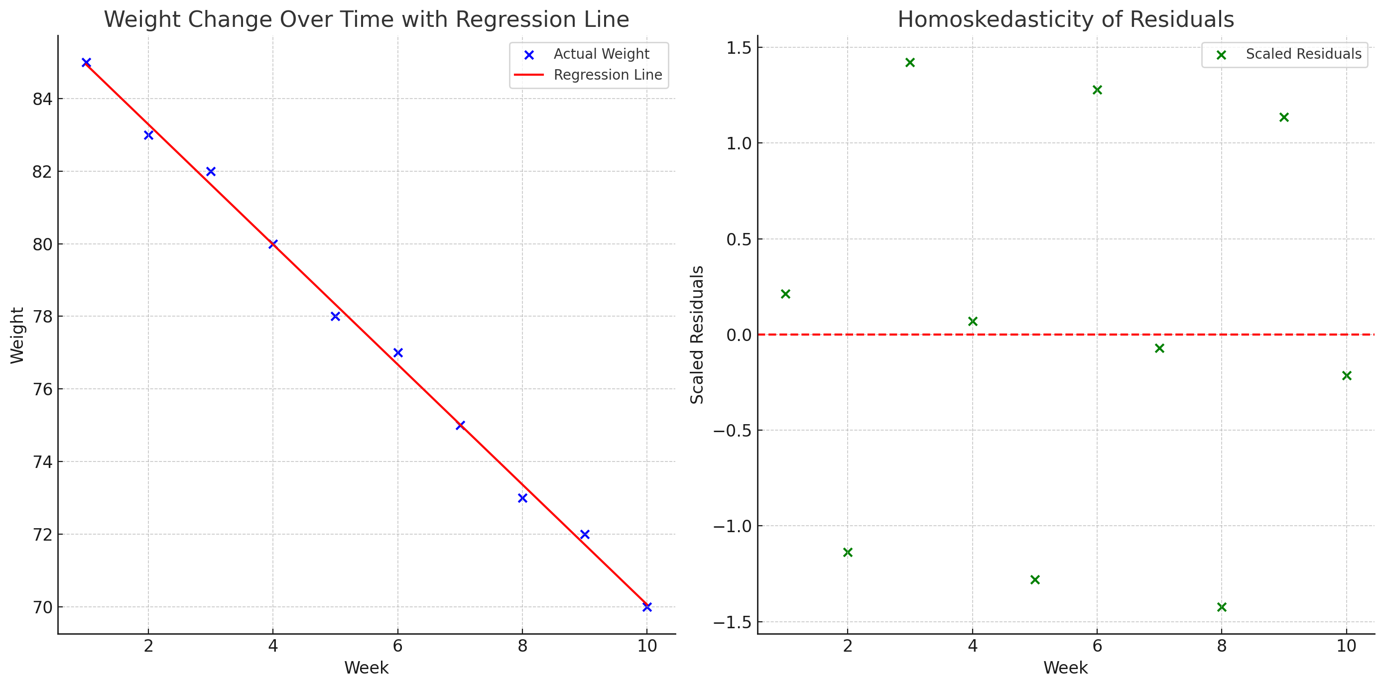 대응표본(paired samples)은 동일한 개체에서 반복적으로 측정된 결과일 수도 있습니다. 순차적으로 관측한 결과로서의 대응표본의 예로는 “운동 선수의 체력 테스트 결과를 매달 측정”, “다이어트 프로그램에 참여하는 사람의 체중을 매주 측정” 등이 있고 시간의 흐름에 따라 동일한 개체에서 반복적으로 측정된 연속형 데이터입니다. 이 대응표본을 분석하면 시간에 따른 변화를 보다 세밀하게 관찰하고 분석할 수 있습니다. 여기서, 속성이 연속형 변수로 표현되는인 경우 운동선수의 체력과 사람의 체중은 연속형 변수인 시간에 따라 적분되는 속성입니다.