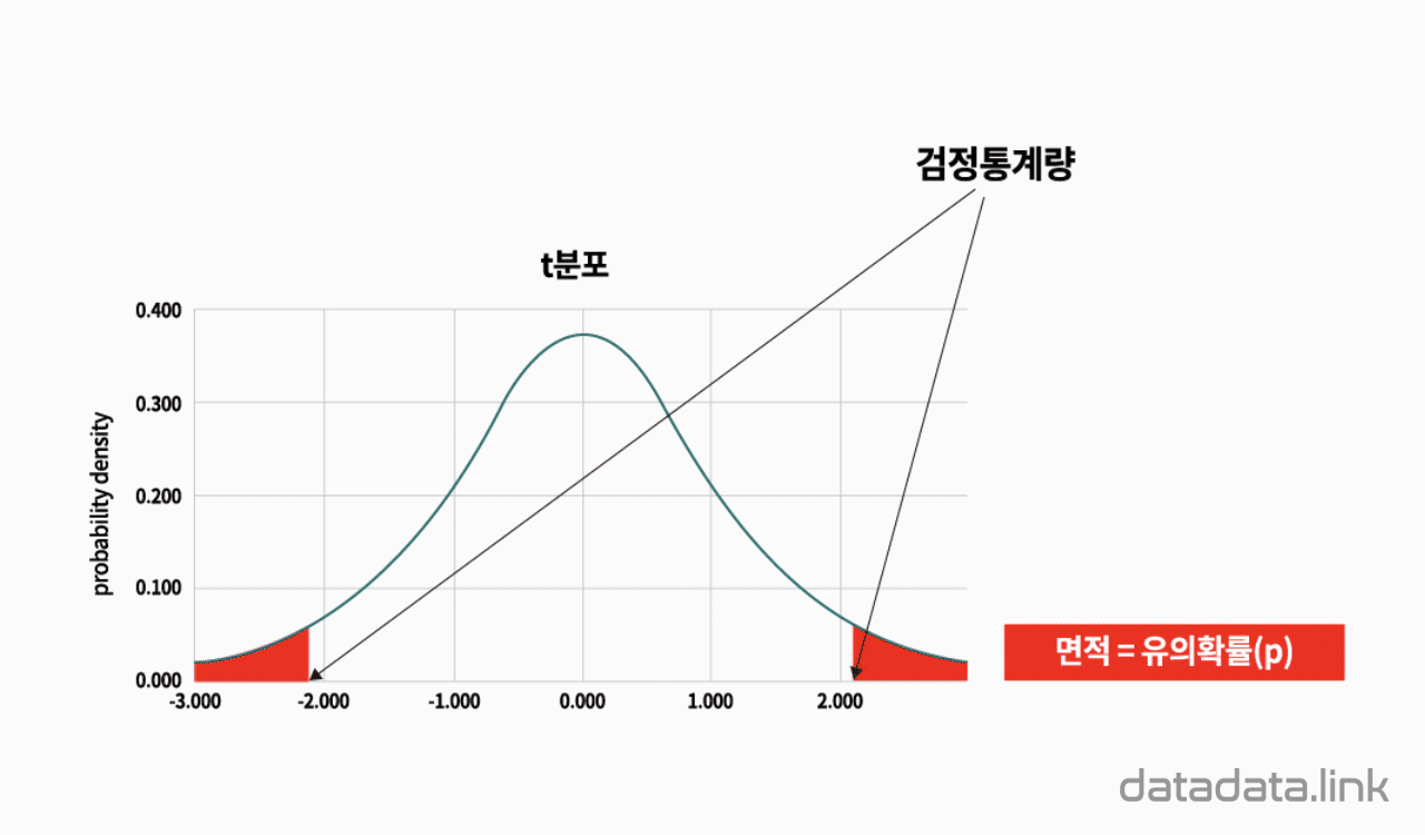 통계의 가설검정에서 $p$값(확률값)은 주어진 통계모델에 대하여 귀무가설이 참일 때 비교된 두 집단 간의 표본평균 차이의 절대값이 실제 관측값보다 크거나 같을 확률입니다. $p$값은 물리학, 경제학, 금융학, 인문학, 심리학, 생물학, 법학 및 사회과학과 같은 많은 분야의 연구에서 일반적으로 사용됩니다.